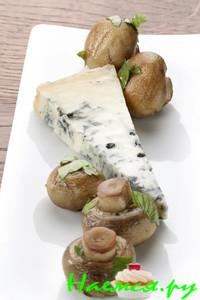 На хлеб выкладываем тонко порезанную лососину,резаные грибы,и часть натертого на мелкой терке сыра.