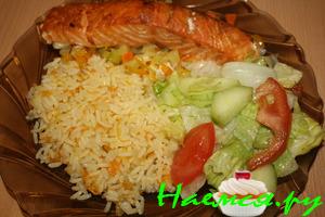 На противень укладываем фольгу, на нее рыбку, кабачки, морковь, приправы. Все это дело заворачиваем.