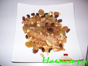4. Добавить виноград (разрезанный на 2ое - ягодка ;-)), миндаль (в оригинале еще и изюм)