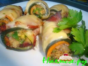 Рулеты из рыбы и цуккини с овощами