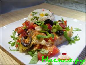 Запеченная рыба с помидорами