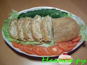 готовый рулет нарезать кусочками и подавать горячим.