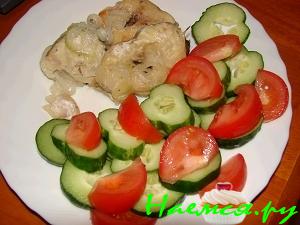 Помазать каждый кусок рыбы соусом. Важно: хрен со сливками размешать нужно тщательно, чтобы он равномерно по рыбе распределился.