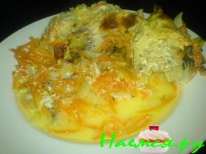 берём рыбку,по желанию кто сколько желает.Помыть и подсушить бумажной салфеткой.Затем чистим морковь и натераем на терке,у меня была морковь замороженная(я по осени приготовила морковь,она у меня неуродилась вся мелкая была,так выбрасывать жалко я помылаеё,она молодая хорошо отмывается и чистить ненадо,потом вкомбайне протёрла как на тёрке,разделила на порции,в мешки и вморозилку.)первый раз я пробовала это блюдо с картошкой,такчто морковь можно заменить на картошку,только её нужно не на терке,а порезать брусочками.Теперь берём посуду в которой будем готовить,сбрызним её рас.маслом и кладем натёртую морковку,какбы создаём подстилку для рыбки,немного посолить и положить рыбного соуса,тоже немного,я этого неделала.Затем берём рыбку и кладём её на морковку чешуёй кверху,немного посолить и залить соусом.ВСЁ!Отправляем в разогретую духовку на 30-45мин180градусов.когда блюдо готово,достаём из духовки и снимаем шкурку вилкой,скручиваем как у меня показано.Вот и всё!