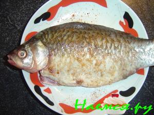 рыбу сбрызнуть лимонным соком и посыпать специями.