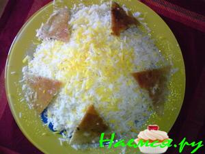 Полить настоявшимся шафраном и растопленным сливочным маслом.