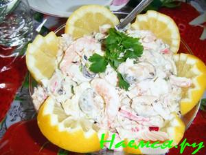 Яйца, крабовые палочки нарезаем кубиками, добавляем кальмары,кукурузу и морскую капусту