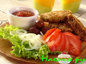 Из фарша делаем котлетки, обваливаем их в кукурузной муке и жарим в растительном масле до готовности.