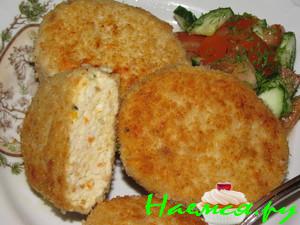 Формируем из массы котлетки, панируем в сухарях и обжариваем с двух сторон.