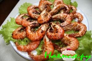 На сковороду с разогретым маслом выкладываем креветки, пару минут обжариваем.