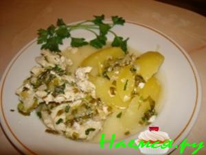 пожаренные овощи, орехи, 1 стакан бульона или меньше (по вкусу) измельчить в блендере, в соус добавить мелко порезанную зелень, залить им рыбу. Соус, конечно же, не обязательно измельчать в блендере, можно оставить овощи кусочками, орехи мелко порубить ножом - это дело вкуса, но получилось очень вкусно. Соус, остывая, становится гуще, у меня на фото он еще горячий, поэтому может показаться слишком жидким