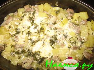 рыбу нарезанную крупными кубиками добавить когда картофель готов,посыпать петрушкой,накрыть крышкой и готовить ещё 4-5 мин., при этом не мешать, выключить и дать настоятся 10 мин.