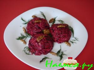1. Отварить свеклу в кожуре. До состояния готовности - она должна быть мягкой когда ее потыкаешь ножом или вилкой.
