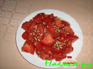 Помидоры крупно нарезать+базилик+семечки+масло.
