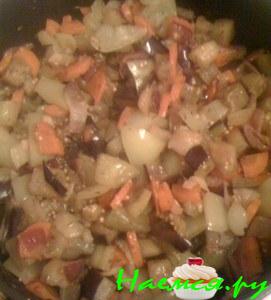 Баклажаны вымыть,срезать плодоножки,нарезать на крупные куски и отварить в кипящей, подсолёной воде не больше 5минут(баклажаны не должны быть сильно мягкими)).Откинуть на дуршлаг,охладить.Лук нарезать тонкими полукольцами,помидоры нарезать произвольно,перец тонкой соломкой,зелень мелко нашинковать.Все овощи,включая баклажаны смешать в одной посуде,добавить морковь по-корейски,уксус,соль,зёрна кориандра,перец и раст.масло,всё хорошо размешать и поставить в холодильник.
