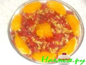 Масло, сок и мед тщательно перемешиваем, заправляем салат.
