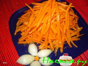 .мясо режем соломкой и тоже маринуем ,как лук.