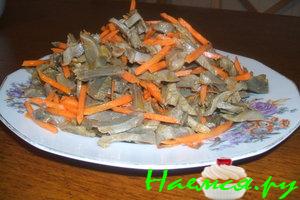Солат из индюшиных желудков с сыром, яйцами и огурцами