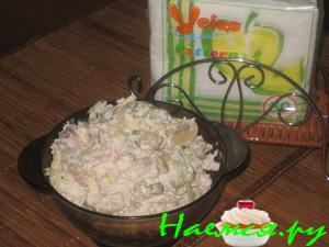 Отварные грудки режем соломкой, яйца трем на крупной терке и выкладываем слоями: курочка - рис - орешки -