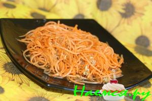 Капусту тонко нашинковать, очищенную морковь нарезать соломкой.
