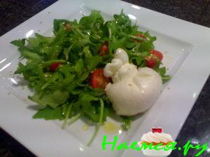 Разрезать сыр пополам.Арбуз очистить от корки и нарезать кубиком.Помидоры разрезать пополам.Красиво выложить на блюдо и полить ол.маслом