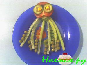 Часть огурца режем вдоль на лепестки . И проделываем вариант который был. Получается в виде короны. И комбинируя разные заготовки создаем наше украшение.