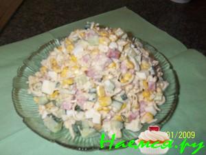 Куринные желудки отварить и нарезать поперек мелкой соломкой. Свежий огурец мелкой соломкой. Репчатый лук. Чуть-чуть присолить и заправить майонезом.