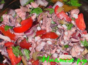 С осьминожками каждый поступает так как написано на упаковке. Я их отварила и остудила.