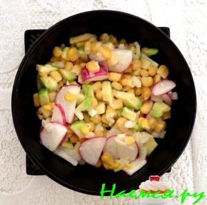 Заправить майонезом.