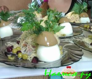 Нарезать мелко кубиками крабовые палочки и оливки.