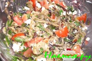 Баклажаны отварить до мягкости в подсоленой воде. Очистить. Нарезать мелкими кубиками.