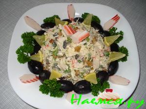 Этот салат готовлю персонально. Яблоки,мясо, огурец,помидор нарезают соломкой, добавить майонез.С помидор срезать 6 шляпок отложить в сторону они еще пригодятся.Все ингредиенты смешиваем и выкладываем на плоскую тарелочку в формочку.Формочку убераем получается пенек. Пенек посыпаем сыром.Клюкву и горошек росыпаем по тарелки.Рядом с пенком ставим гриб.Яйцо ножка помидор шляпка. Между пенком и грибком вставляю зелень.