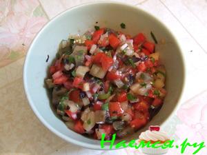 салат заправить раст.маслом.я добаляю чуть-чуть.