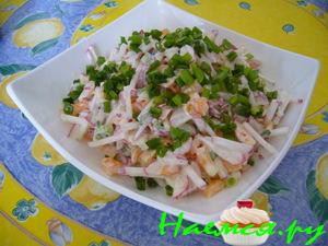 Подготовить салатную зелень. Редиску , рыбку - нарезать соломкой. С креветок слить воду. Яйцо нарезать кружочками. Сыр нарезать полосочками или кубиками. Оформить салат , слегка перемешать и заправить(полить) дрессингом, припорошить натёртым желтком.