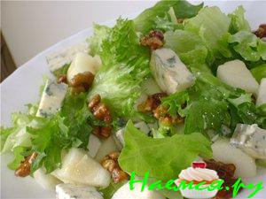 Как приготовить салат с рокфором и свеклой. Поставьте сковородку на огонь и проколите на ней грецкие орехи. Затем возьмите небольшой салатник и выложите на него листья салата, которые необходимо тщательно вымыть и положить 2/3 части. Помойте и очистите свеклу и сделайте нарезку в виде тонкой соломки или потрите на терке, которая предназначена для шинковки на корейскую морковку, выложите ее на листья салата, поперчите и посолите и присыпьте сверху раскрошенный сыр рокфор и засыпьте просушенными орехами. Сверху накройте оставшимися листьями салата. Затем выдавите чеснок через чесночницу и смешайте его с другими оставшимися компонентами, которые остались для соуса и по вкусу добавьте специй. Залейте салат соусом и можно употреблять. Салат не нужно размешивать, а подавать нужно выложенный слоями. Салат сверху можно украсить веточками зелени петрушки или укропа.