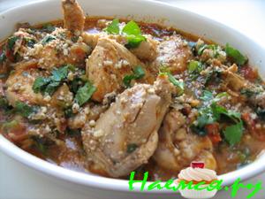 1.Птицу помыть,разделать,нарезать порционно,посолить,положить на сковороду и обжарить до полуготовности