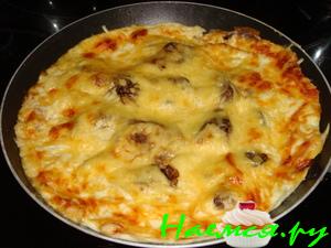 Режем грибы и лук.Обжариваем лук и грибы. Добавляем соль и специи.Добавляем в поджаренные грибы 1 ложку муки,перемешивая и дав прогреться.Затем добавляем бульон и сметану,и оставляем на огне еще минут на 5