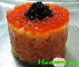 Лосось должен быть обязательно свежим. Его мы режем на маленькие кубики.