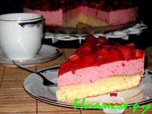 Незадолго до подачи украсить свежей клубникой (я разрезала каждую ягодк вдоль пополам и выложила по ранду)