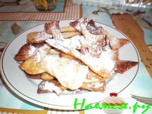 2.ананасы выложитьна салфетку обсушить посыпать сахарной пудрой и оставить на 10 мин.