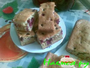 выложить нарезанные дольками яблоко или грушу, посыпать ягодами и