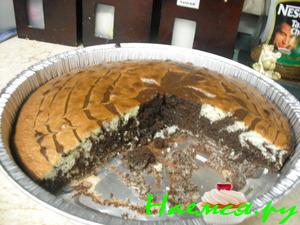 Оба теста, чередуя темное и светлое, вносить по 2 ст. ложки в центр формы или сковороды, смазанной маслом. Рисунок зебры получится лишь в том случае, если всякий раз темное или светлое тесто вносится строго в центр формы,затем зубочисткой провести полоски очередуя с низу в верх и с верху в низ, торт немедленно ставится в разогретую духовку.