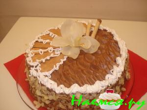 смазать шоколадно-бисквитный корж оставшимся кремом шарлот.