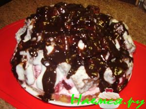 Глазурь: 3 ст.л сахара,3 ст.л.какао, 4 ст.л.сметаны,на слабом огне пока не раствориться сахар,затем добавить 100 гр.сливочного масла довести до кипения, как загустеет смазать торт.