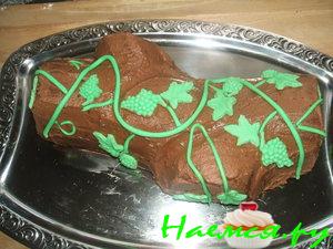Положить рулет швом на блюдо.Срезать бока ровненько(из обрезков можно сделать маленькие сучки на полено).