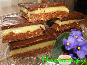 Смазать тортик ровным слоем глазури. Для подачи разрезать на пирожные.