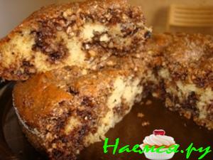 Всё смешать - сметану, сахар, яйца, корицу, соду, измельчённые орехи, муку. Тесто должно быть как густая сметана.