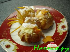 После того ка пирожные остынуть их надо разрезать по горизонтали и положить в них любую из приготовленных вами начинок.