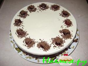 Этой смесью пропитать коржи, у меня не хватило этого количества и я развела вишневое варенье тоже ромом и водичкой.