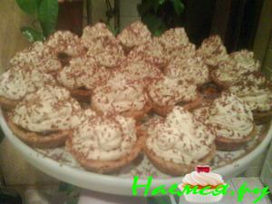 Для песочного теста взбить сливочное масло с сахаром до воздушного состояния. добавить молотые орехи, яичные желтки, корицу, соль и ром. Взбить ещё минуты 2, затем уменьшить скорость и добавить муку со щепоткой пекарского порошка. Миксер остановить и замесить тесто быстро руками. Тесто будет очень мягким, но к рукам приставать не должно. Завернуть тесто в пищевую плёнку и положить в холодильник на минимум час. Затем выложить тесто в формы для корзиночек, наколоть вилкой и выпекать до золотистого цвета примерно - 20 минут. Остудить.